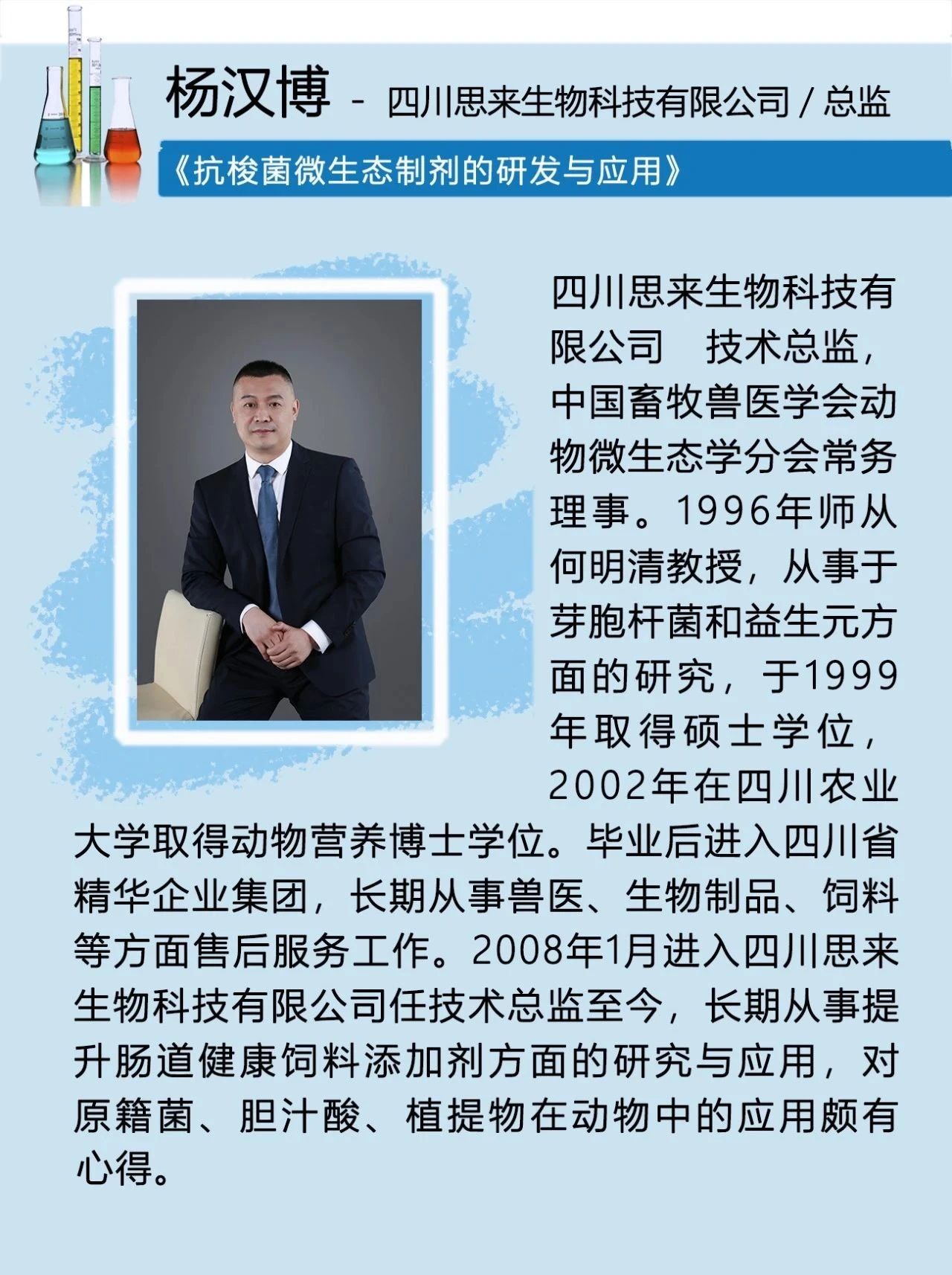1、本次會(huì )議為7月15~17日,其中7月15日全天報到;7月15日晚召開(kāi)理事會(huì );7月16日上午是開(kāi)幕儀式與學(xué)術(shù)報告(一),下午是學(xué)術(shù)報告(二)、企業(yè)家學(xué)術(shù)報告(三)、青年學(xué)者報告(一)和青年學(xué)者報告(二);7月17日為參觀(guān)考察四川思來(lái)生物科技有限公司生產(chǎn)基地及離會(huì )。
